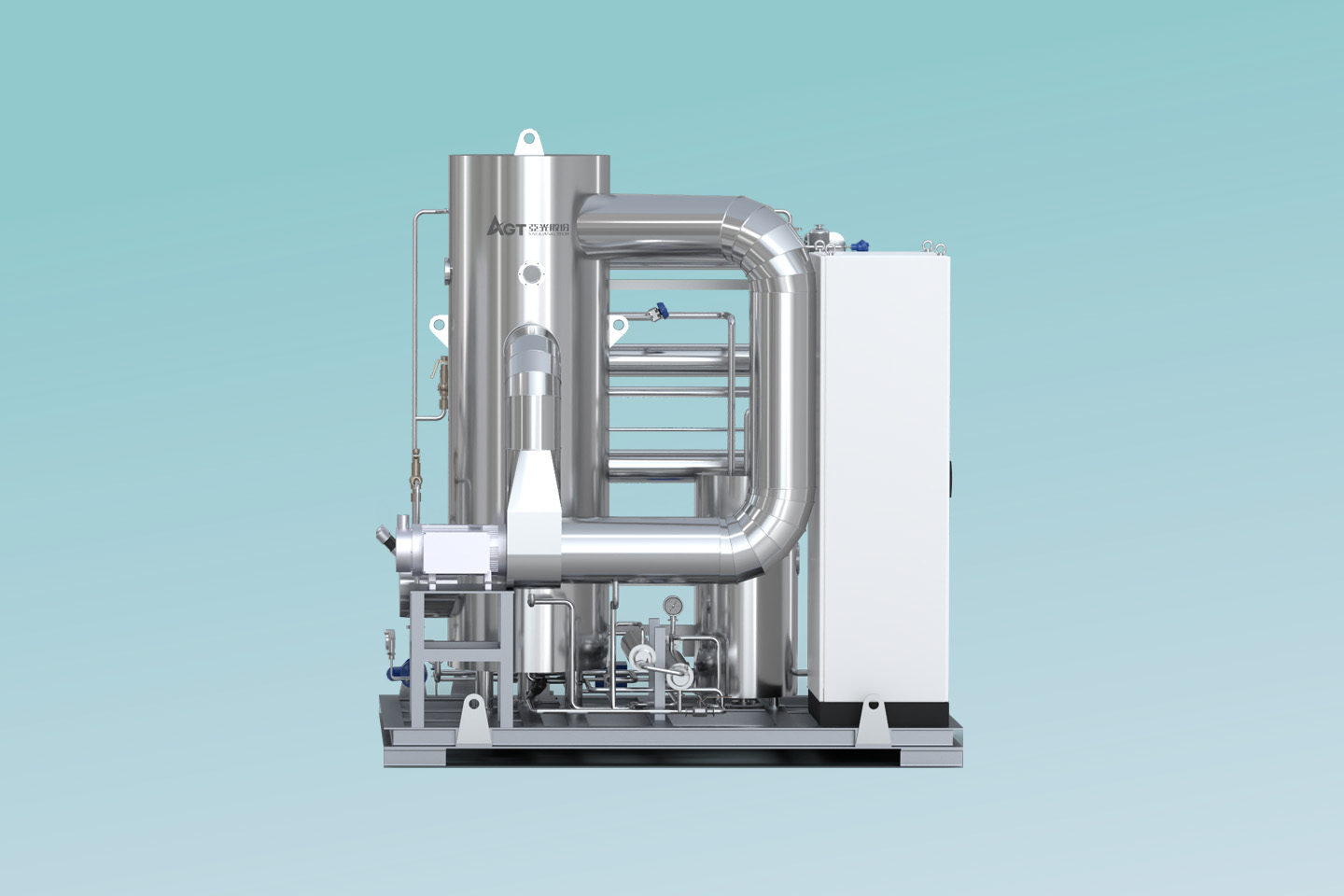 MVR熱泵精餾系統(tǒng)以高效旋轉(zhuǎn)精餾床為基礎(chǔ),利用離心力場(chǎng)代替重力場(chǎng),強(qiáng)化相與相之間的相對(duì)速度和相互接觸,通過強(qiáng)化傳質(zhì)傳熱來提高分離效率縮小設(shè)備體積。 通過在系統(tǒng)中引入適用于小流量、大壓比的螺桿式蒸汽壓縮機(jī),即可實(shí)現(xiàn)MVR循環(huán)熱泵精餾。
